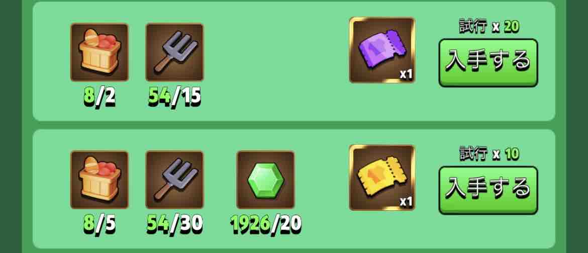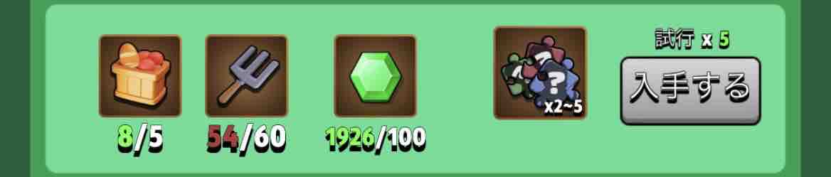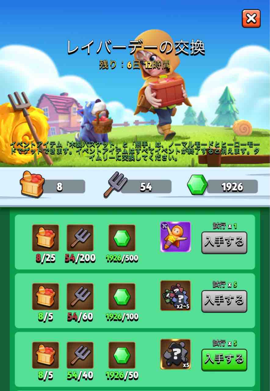 報酬の獲得にはイベントアイテム「鉄のフォーク」と「木製のバスケット」およびジェムが必要になります。イベントアイテムはノーマル、ヒーローの両チャプターでドロップしますので、できるだけ多くの敵が出てくるダンジョンを周回するといいでしょう。