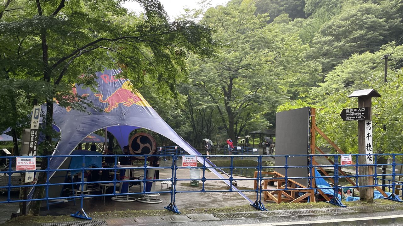 テントもレッドブル。柵の向こう側は関係者のみ立ち入り可能。