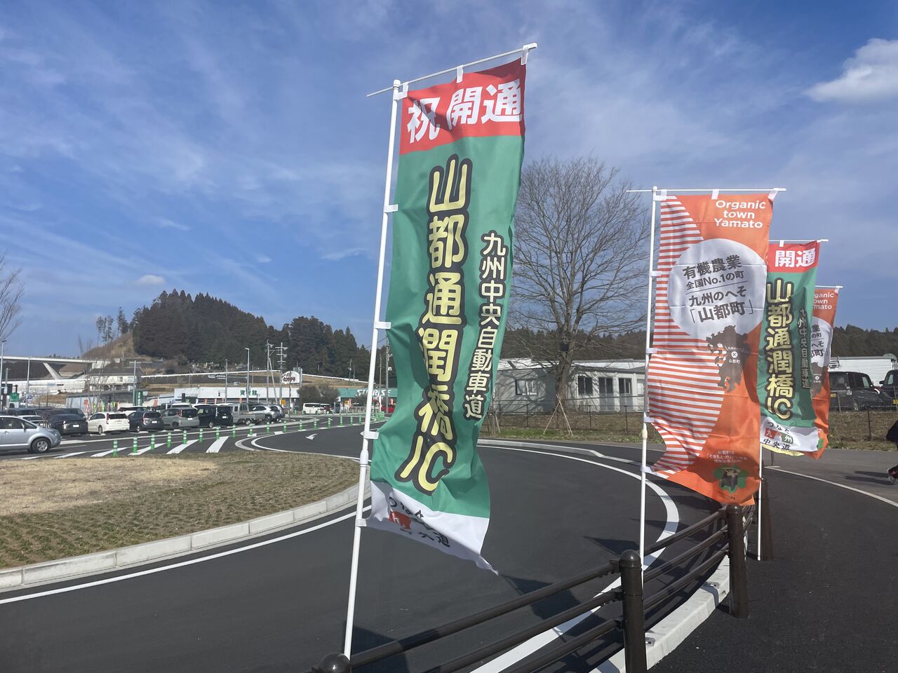 九州中央自動車道「山都通潤橋IC」です。やっほい。2月11日の紀元節の日に開通したんですねえ。できたてジャぱん!(道路が)。