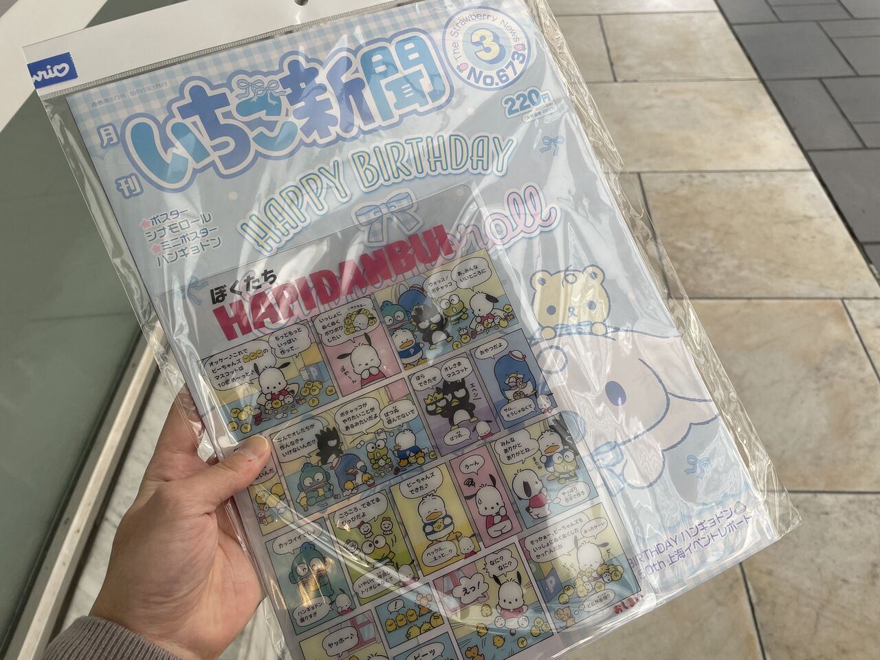 デパートではサンリオの店に寄っていちご新聞買いました。
