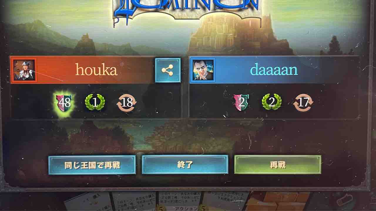 今日は今日で、友達とオンラインでドミニオンやりました。さいきんiPhoneやiPadでも遊べるようになったですよ。