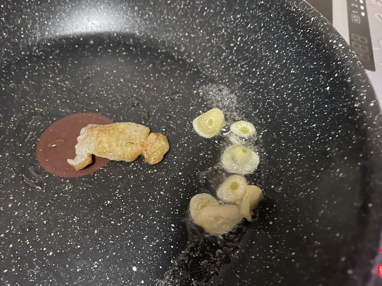 まず豚の脂身をあたためてラードを出す。これもラード?