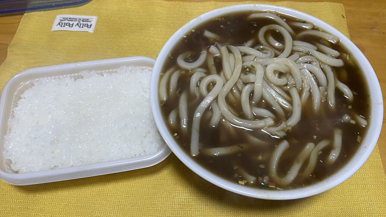 夜はこれまたもらいもの、レトルトのカレーうどんです。