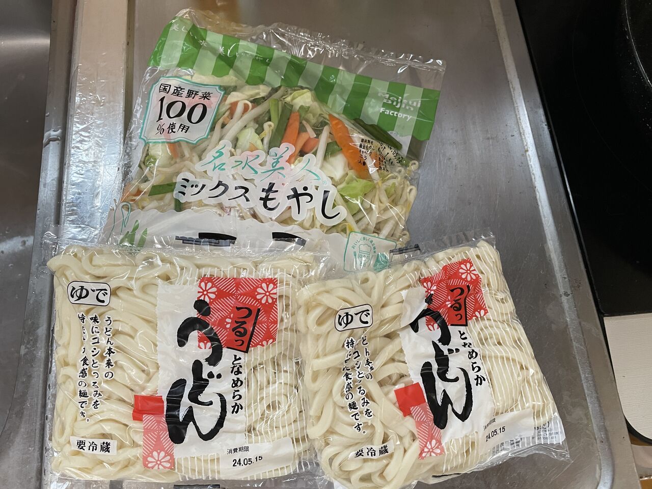 うどんは2玉78円、カット野菜99円です。同じカネでペヤング大盛り買うより絶対こっちでしょう!
