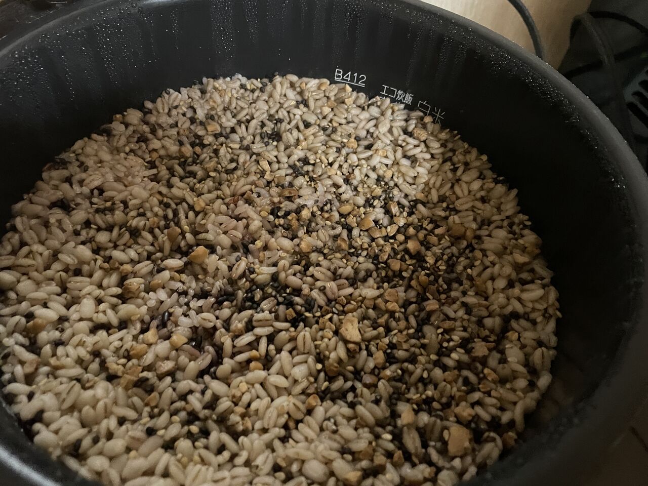 雑穀は入れすぎてわけわかんなくなるくらいまで混ぜて炊くのが好きです。
