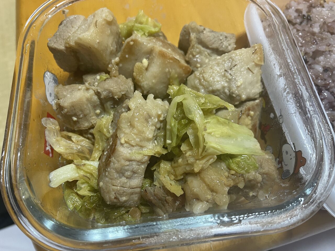 昨日おじいちゃんに豚肉とキャベツをもらったので、冷凍してたニンニクと味噌とみりんと砂糖でジャッと炒めました。