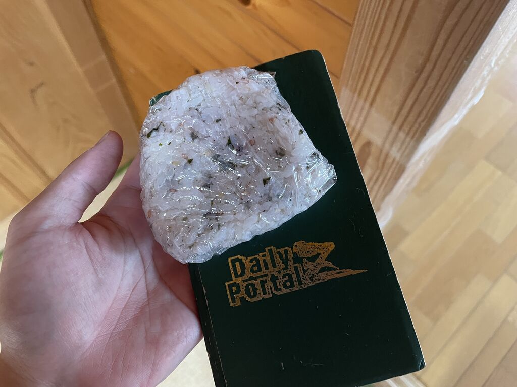 おはようございます。 珍しく朝ご飯におにぎりを食べました。米とふりかけは貰い物なので0円です。