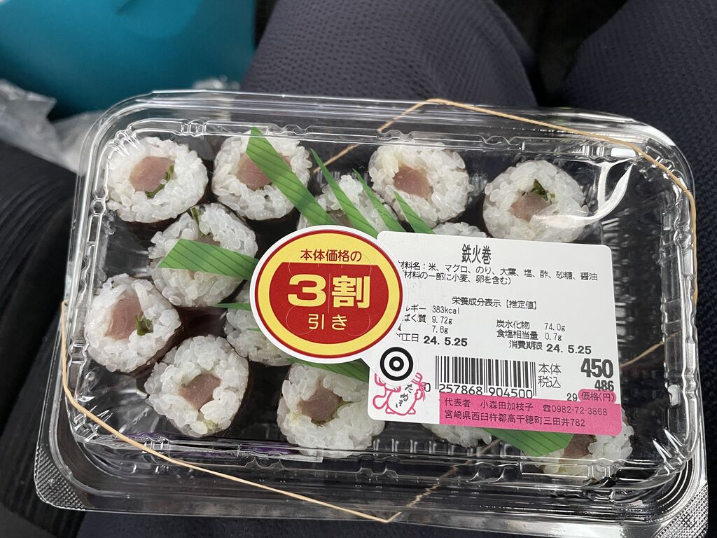 夜はフルーツポンチ会(デイリーの記事をご覧ください)があり、時間がなく急いでいたのでスーパーで鉄火巻を買ってしまいました…!!!