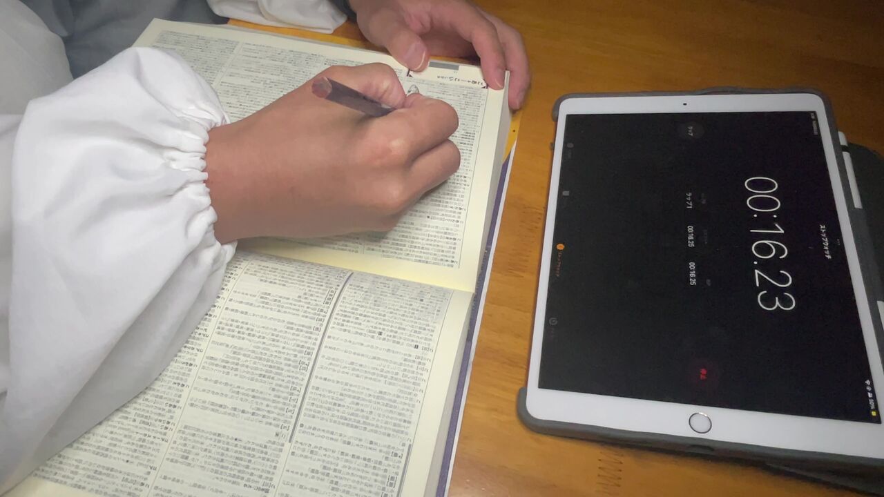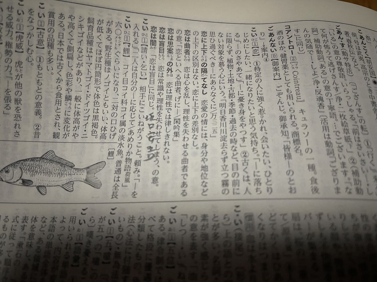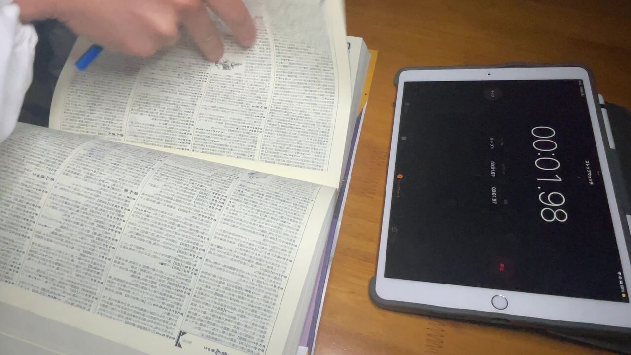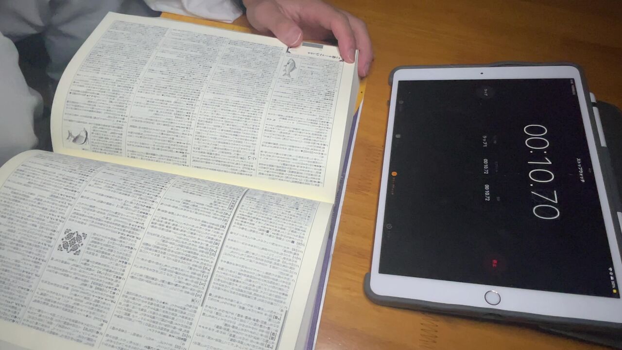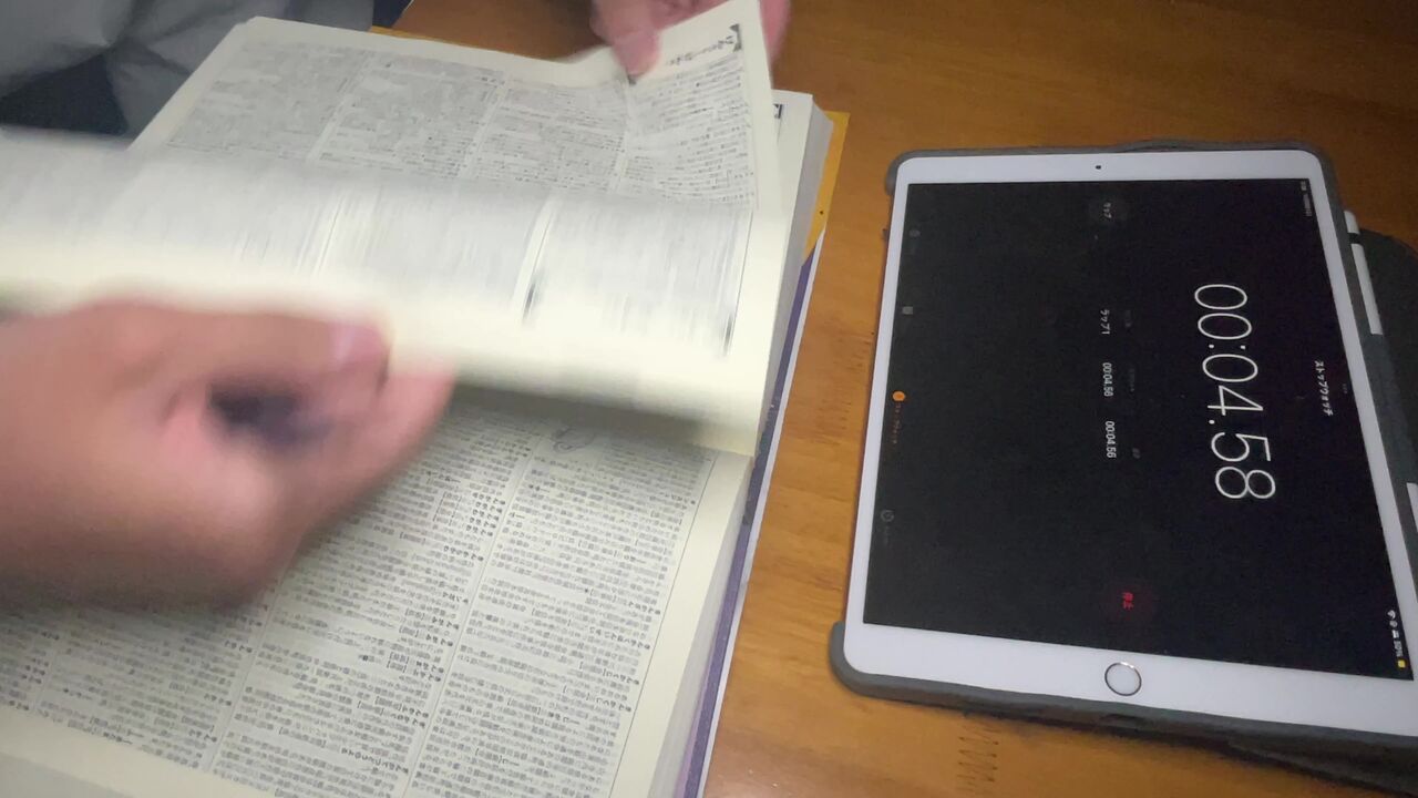 これをやります。辞書を開いて「恋」を見つけて名前を書きつけるまでのタイムをはかるんですね。